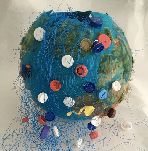 De laatste jaren speelt de milieuvervuiling door plastic een prominente rol in het verhalende aspect van mijn uiting in textielkunst.